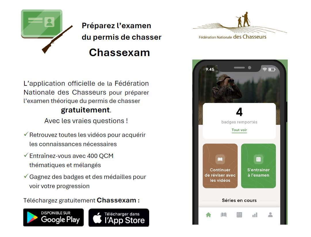 La FNC a fait développer une application mobile gratuite Chassexam pour réviser son permis de chasser.